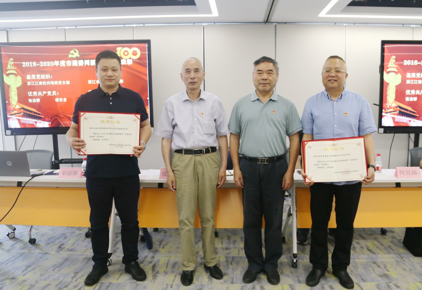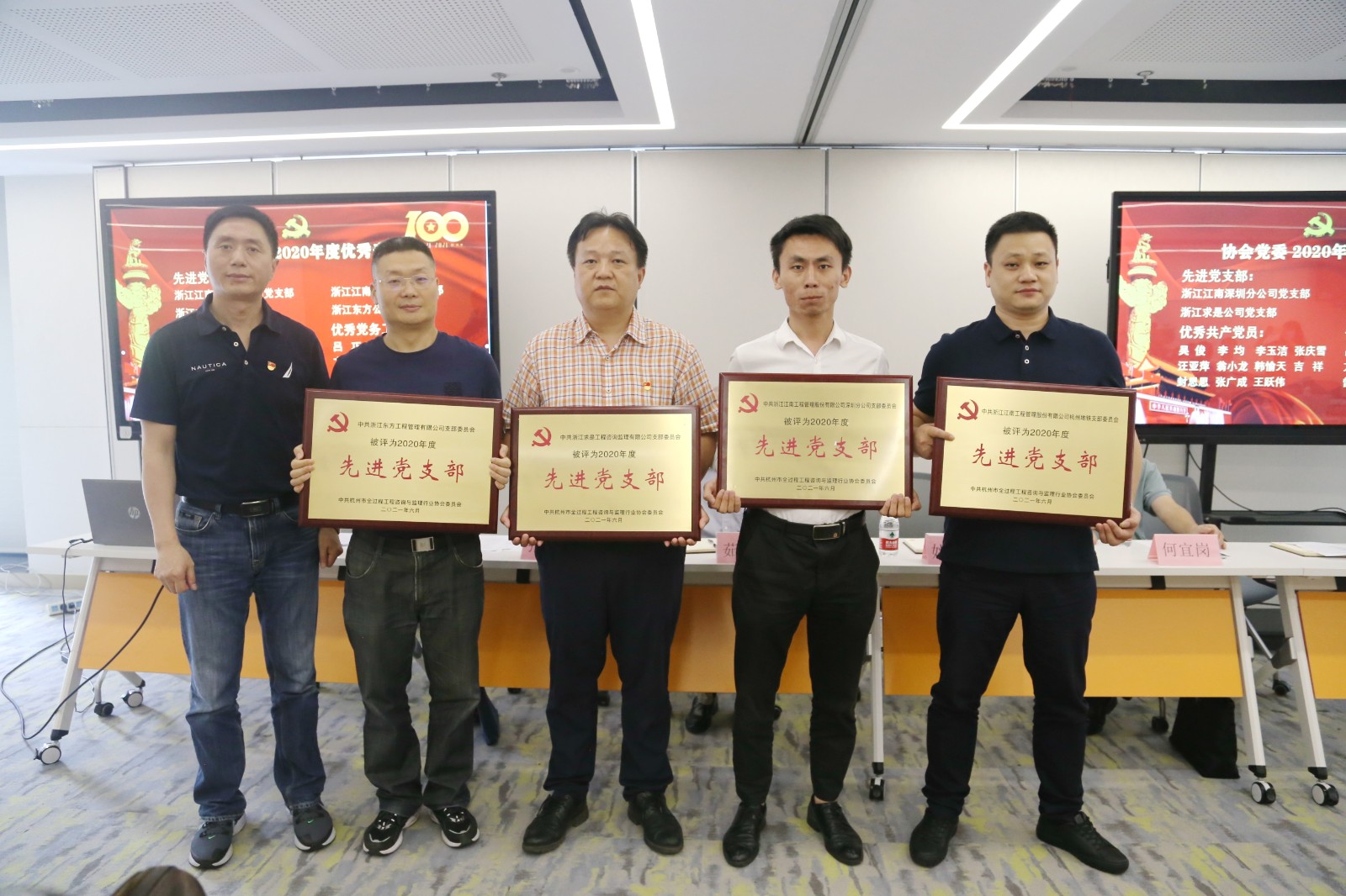 6月25日,江南管理全体党员参加中共杭州市全过程工程咨询与监理行业协会委员会召开的“庆祝建党100周年·党委书记讲党课暨2020年度优秀表彰会”,共同颂扬党的丰功伟绩,抒发对党的深厚情谊。杭州市全过程工程咨询与监理行业协会秘书长、协会党委书记姚胜忠同志,协会党委纪检委员翁小龙同志,协会党委宣传委员金桂明同志,协会党委组织委员张治群同志,特邀协会老领导、原党委书记何宜岗和党委副书记茹关荣同志,还有通过视频会议和现场参会的协会党委全体共产党员,共计145 人参加了本次会议,协会党委副书记邓丽娜同志主持会议。