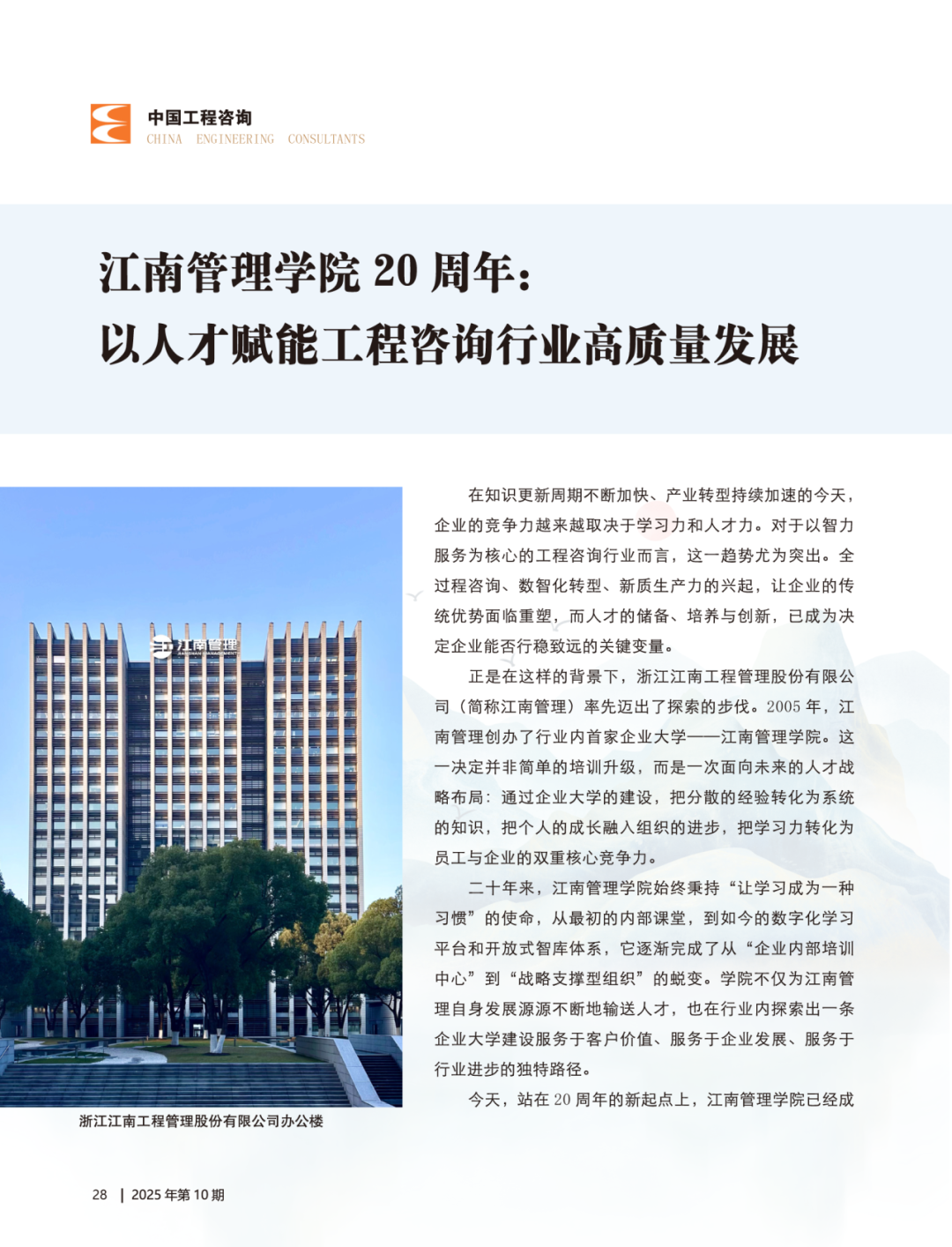 Jiangnan College's 20th Anniversary: Empowering High-Quality Development in Engineering Consulting through Talent
