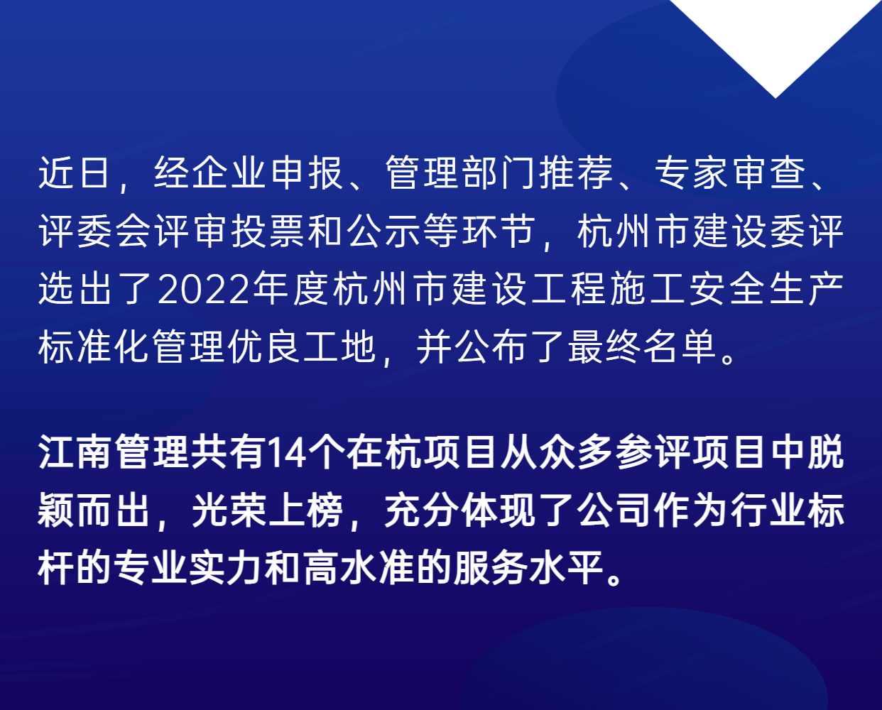 江南管理14项目上榜2022年度杭州市安全生产标准化管理优良工地