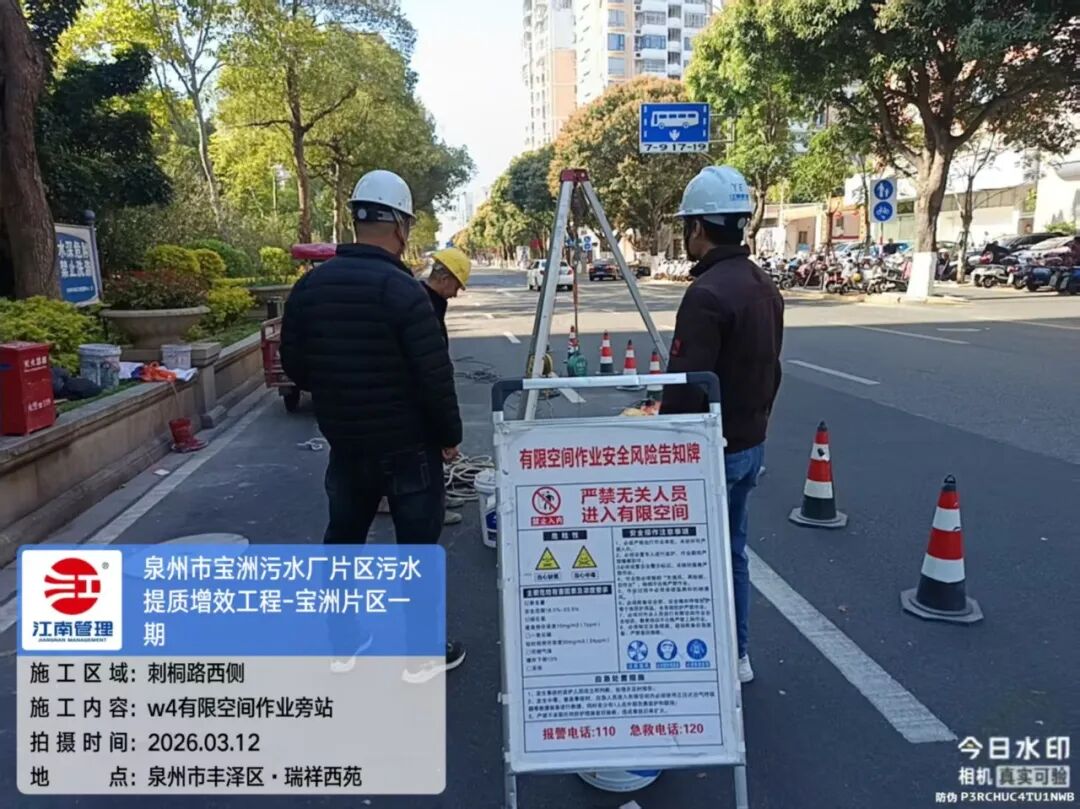 江南管理坚守全过程咨询职责,将安全文明施工放在首位,严格执行“集团—属地分公司—项目部”三级联动管理机制,严查基坑支护、有限空间作业及临时用电安全,定期组织专项安全检查与应急演练,确保项目稳步推进。质量管控上,从管材进场验收到闭水试验、路面恢复压实度检测,全过程旁站监督、平行检验,确保地下“动脉”通得快、流得顺、用得久。